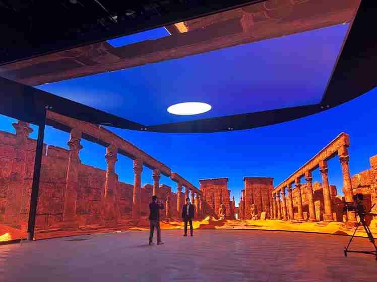 创利空间以超过 2200 块 LED 面板组合成宽 15 公尺,,高 6 公尺,,,270 度带天幕的环形屏幕墙,,,,占地 470 坪,,,为全台规模最大的混合实境智能摄影棚。。。。其高色彩覆盖率、、6000Hz 的超高刷新率,,,让画面鲜丽丰富,,,,维持细腻度和锐度;加上无限尺寸、、无缝拼接的特性,,打造出身历其境的视觉震撼和 3D 拟真效果,,建构出堪比星际大战《曼达洛人》的特效场景。。。此类 LED 巨型实时混合实境智能摄影棚,,未来可望在制片产业中扮演核心战略装置。。