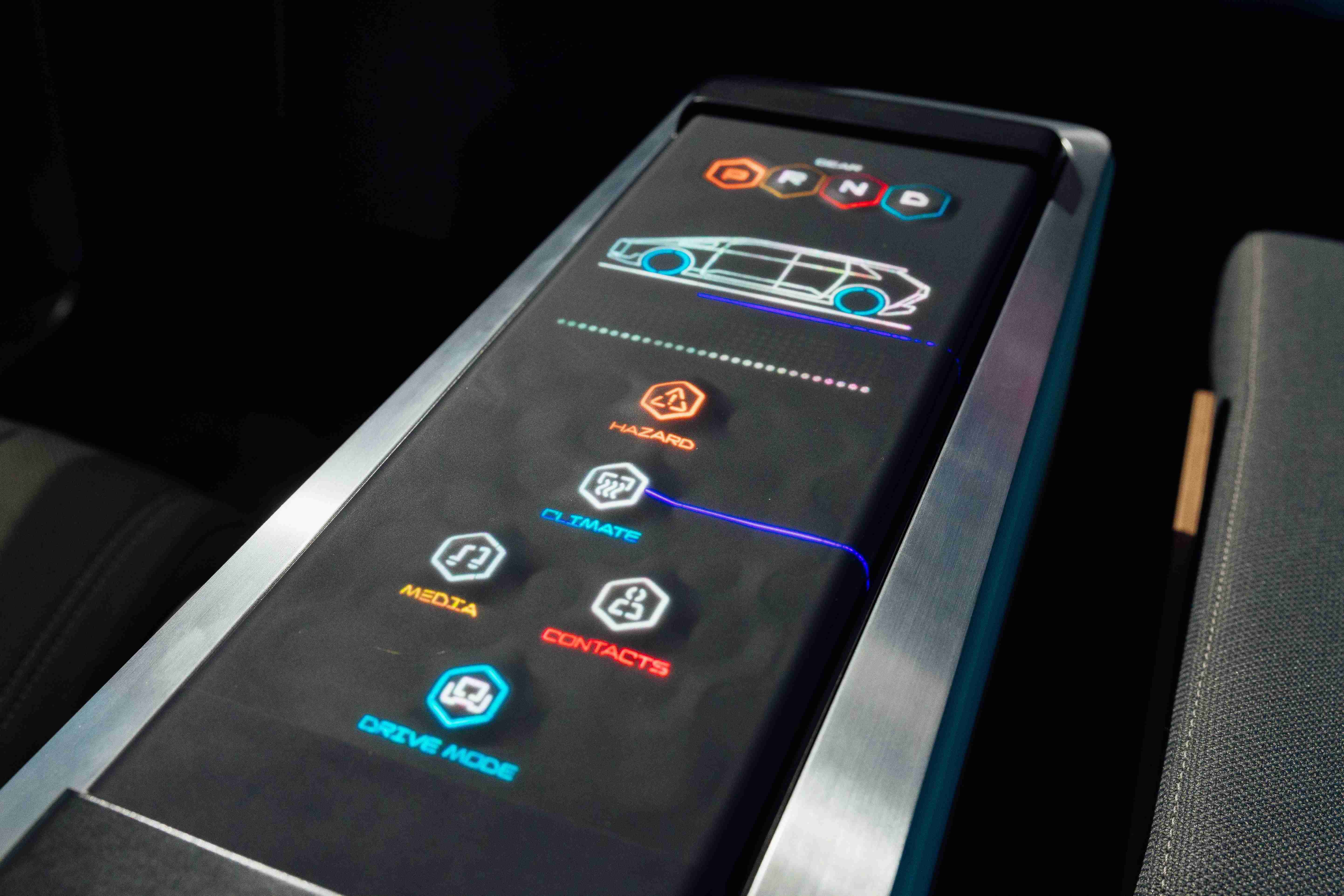 多变形态中控显示(Morphing Center Control)拥有动态变化的表面,,平时常态显示车辆功能,,进一步操作时,,,则会隆起成为3D 按钮,,并在触控时以震动回馈,,,,以精细的操作开创人机互动新境界。。 ![]()