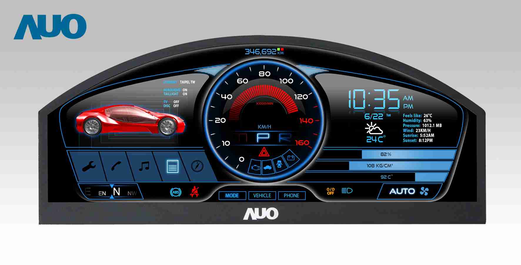 EBpay 12.3吋超高解析异型切割车用面板,,拥有流线外观及精细画质