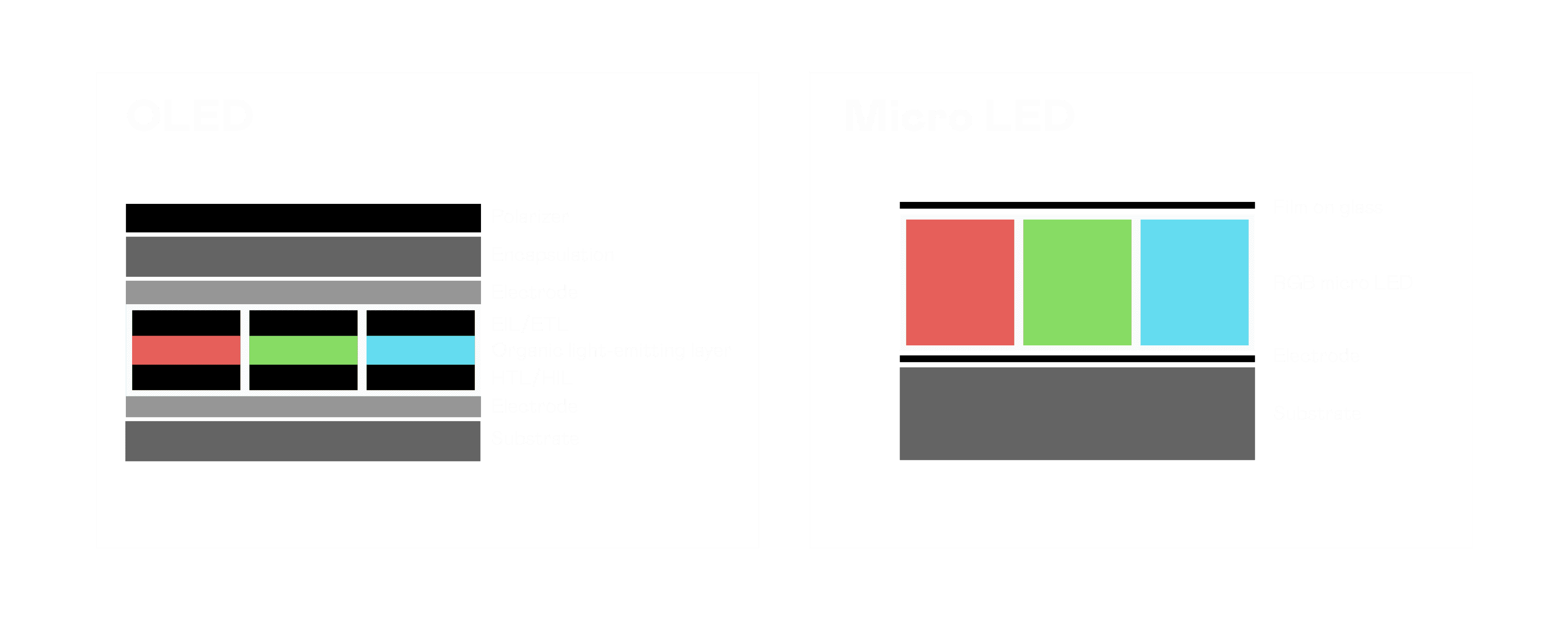 以 LED 做为显示画素,,可让 LED 的发光效率发挥到极致,,,从而让显示器具备优异的亮度表现,,不论是在户外或室内,,,均具备出众的显示效果。。同时,,,与使用有机材料的 OLED 相比,,LED 具备更稳定、、、、寿命更长的特性,,,不仅不会有画面烙印问题,,,而且更不容易出现故障、、坏点。。。