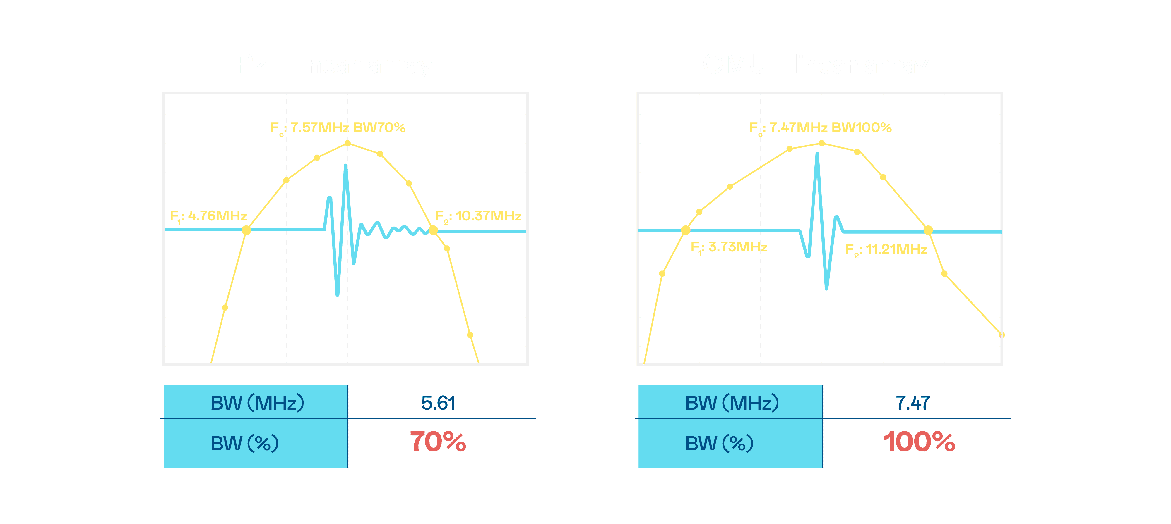 超音波影像的解析度高低,,首先取决于探头能发出的讯号频宽。。EBpay CMUT 可提供高清晰的超音波讯号,,提供高频宽、、、高灵敏度、、、、影像纹理细节更高的超音波影像,,,协助医护人员缩短影像判读时间及利用精准的医疗影像进行诊断。。。
